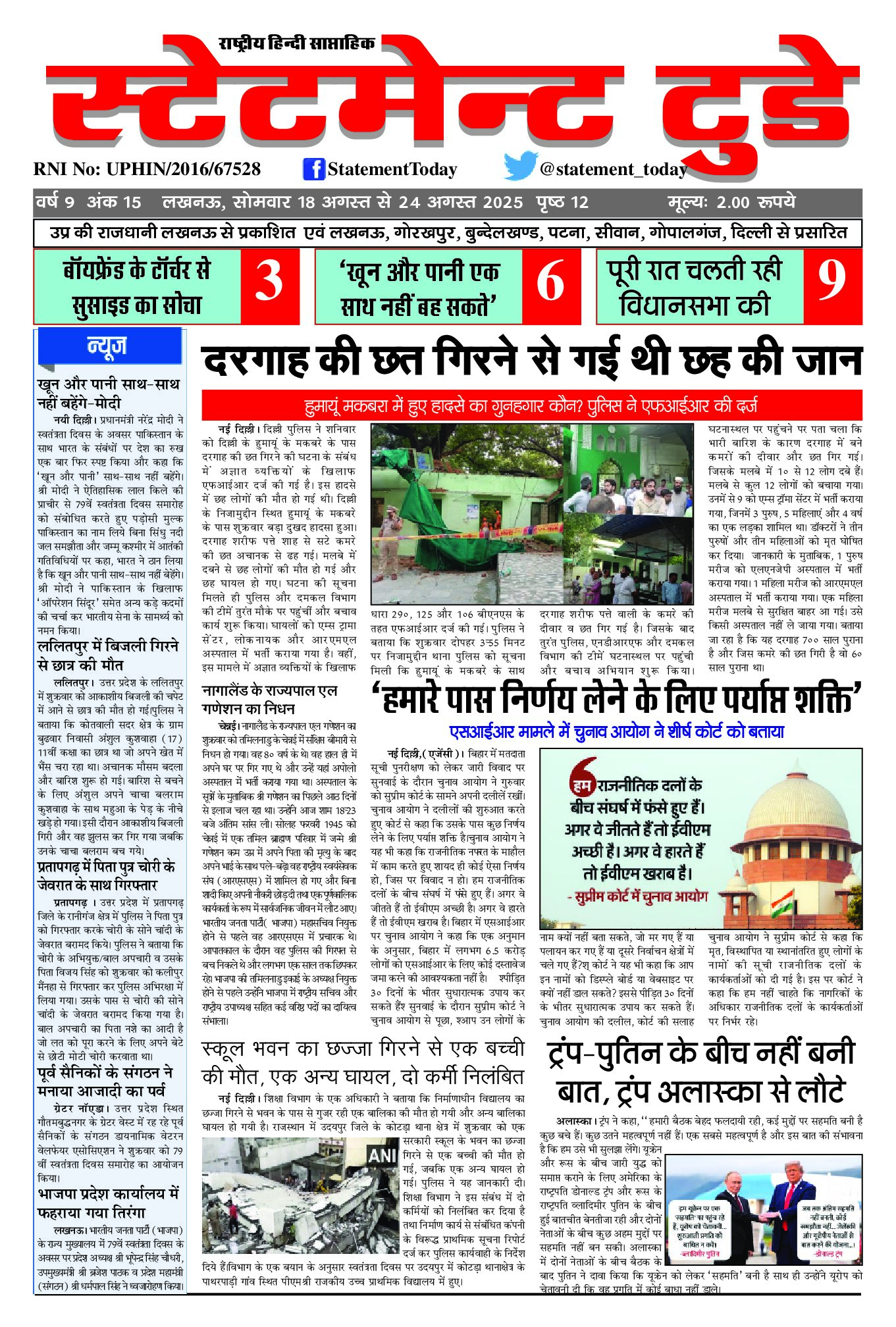 ई पेपर 18th अगस्त 2025, लखनऊ